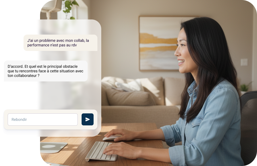 🤖 Une IA toujours disponible, un soutien immédiat🧠 Un regard humain quand ça devient sensible 🎯 Pour grandir et mieux manager dès maintenant